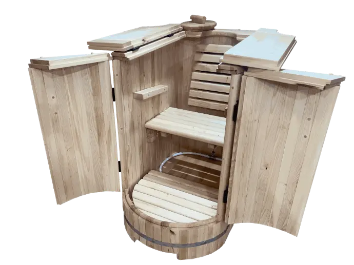 O saună umedă compactă din lemn de tei, în care intră doar corpul de la gât în jos (unică saună potrivită chiar și pentru copii sau persoane claustrofobe). În interiorul saunei se eliberează o combinație de abur saturat cu plante medicinale și uleiuri esențiale ce oferă numeroase beneficii organismului.