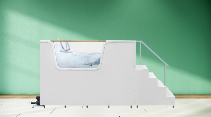 AquaCABIN REHAB PRO permite efectuarea aqua fitness-ului într-o cabină individuală. Combină într-un singur echipament avantajele exercițiilor în apă cu beneficiile hidromasajului țintit, cât și cu presiunea hidrostatică a apei, ceea ce duce la cele mai bune rezultate, fără antrenamente fizice istovitoare.