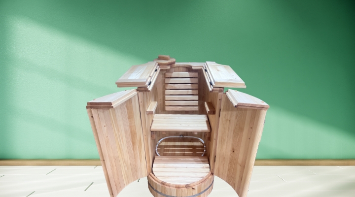 O saună umedă compactă din lemn de tei, în care intră doar corpul de la gât în jos (unică saună potrivită chiar și pentru copii sau persoane claustrofobe). În interiorul saunei se eliberează o combinație de abur saturat cu plante medicinale și uleiuri esențiale ce oferă numeroase beneficii organismului.